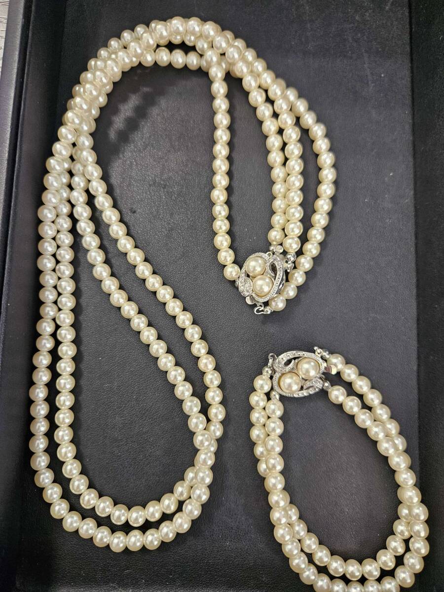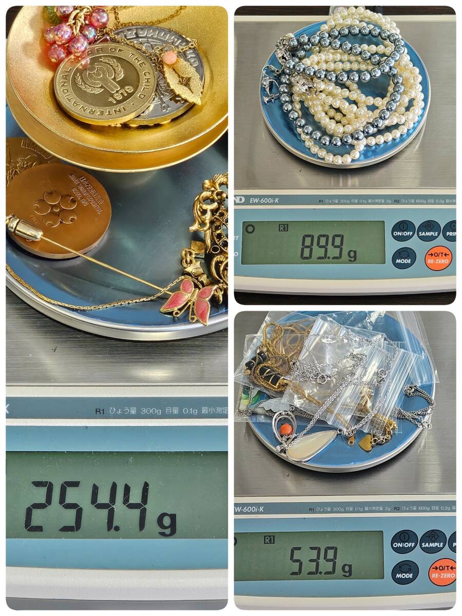 | #3053 【メッキ アクセサリー メダル 金杯 まとめ】パール ネックレス ブレスレット イヤリング ブローチ など | ||