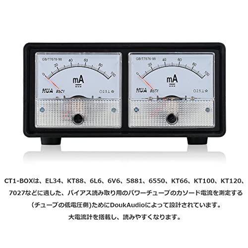 「Nobsound EL34 KT88 6L6 6V6 6550 KT66 真空管用 8ピン デュアル バイアス 電流 プローブテスター メーター」▼▼(商品説明)ブラック・ブラック ・CT1-BOXは、EL34、KT88、6L6、6V6、5881、6550、KT66、KT100、KT120、7027などに適した、バイアス読み取り用のパワーチューブのカソード電流を測定する(チューブの低電圧側)ためにDoukAudioによって設計されています。大電流計を搭載し、読みやすくなります。・より長い耐用年数のためのセラミックソケットと厚い金メッキを施した丈夫なゴールドピを採用されます。・デュアル大型電流計リーダー、最大100mAの電流範囲をテストできます。・優れた導電性を確保するために銅線を採用されます。・各プローブテスターは、卓越した職人技によってはんだ付けされています。 金属ケース、より頑丈で、より優れたシールド性能を備えています。説明 ブランド:Douk Audio モデル:CT1-BOX DCプラグ:5.5 / 2.2 mm チューブソケットケーブルの長さ:23cm チューブソケットの材質:セラミック 流速計の範囲:100mA ボックスの寸法(W * D * H):150 * 106 * 70mm / 5.90 * 4.17 * 2.75in 正味重量:500g / 1.10lb パッケージ重量:1000g / 2.20lb 使用方法 1.アンプの電源を切り、2つのプローブテスターをCT1-BOXのAおよびBインターフェースに別々に接続します。 2.パワーチューブを取り外し、バイアスプローブソケットに挿入します。 3.バイアスメータープローブをアンプのチューブソケットに挿入します。 4.パワーアンプの電源を入れ、チューブを約5分間温めてから、バイアス測定値を読み取ります。 5.左側の電流計は「A」入力を読み取り、右側の電流計は「B」入力を読み取ります。 両方の読み取り値が同じであれば、それは完璧です。 そうでない場合は、チューブ間のバランスを良くするために、差が2mAまたは3mAを超えないようにする必要があります。 包装内容明細書 1ペア×プローブテスター 1×電流メーターボックス